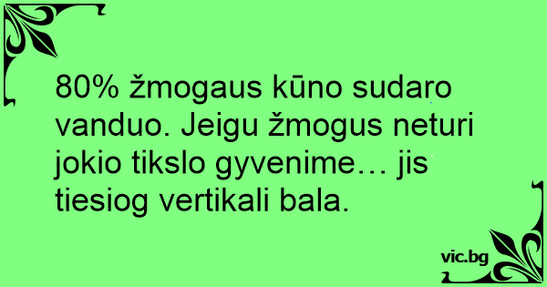 80% žmogaus kūno sudaro vanduo. Jeigu žmogus neturi jokio tikslo gyvenime… jis tiesiog vertikali bala.