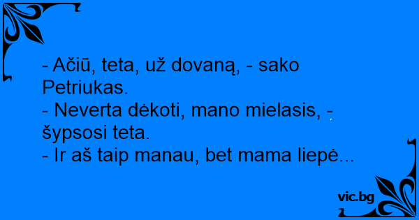- Ačiū, teta, už dovaną, - sako Petriukas.