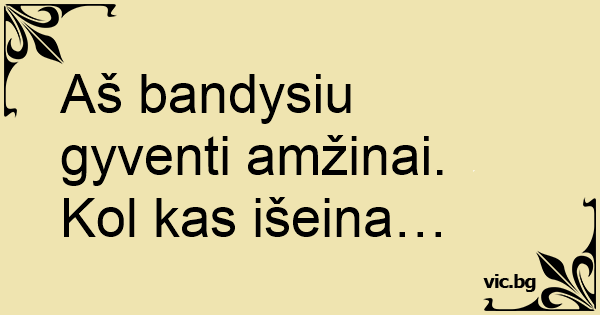 Aš bandysiu gyventi amžinai. Kol kas išeina…