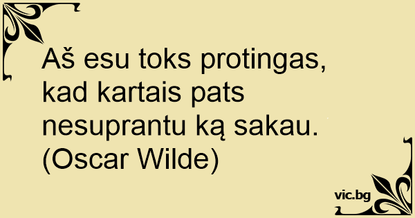 Aš esu toks protingas, kad kartais pats nesuprantu ką sakau. (Oscar Wilde)