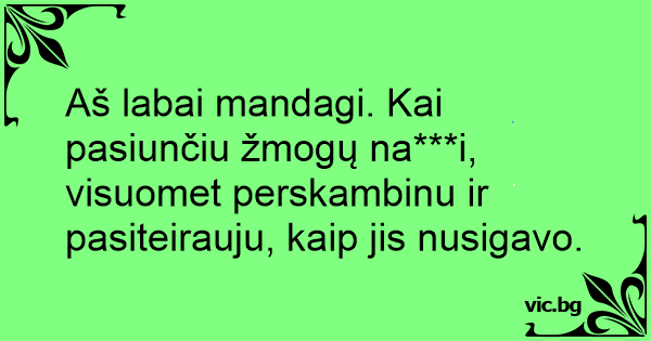Aš labai mandagi. Kai pasiunčiu žmogų na***i, visuomet perskambinu ir pasiteirauju, kaip jis nusigavo.