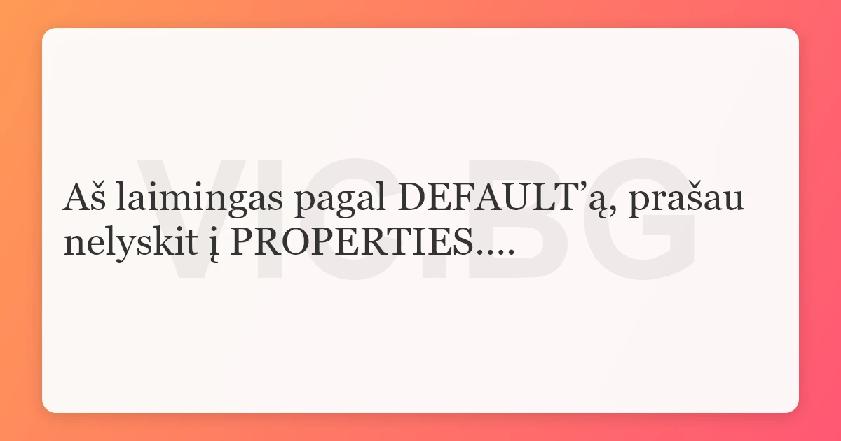 Aš laimingas pagal DEFAULT’ą, prašau nelyskit į PROPERTIES….