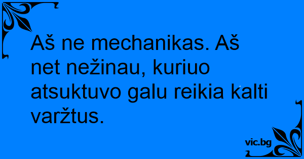 Aš ne mechanikas. Aš net nežinau, kuriuo atsuktuvo galu reikia kalti varžtus.