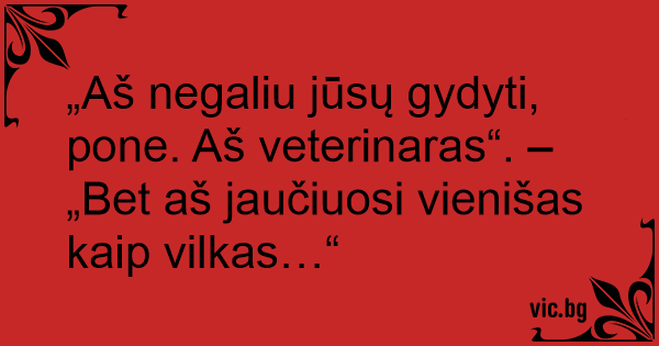 „Aš negaliu jūsų gydyti, pone. Aš veterinaras“. – „Bet aš jaučiuosi vienišas kaip vilkas…“