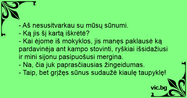 - Kai ėjome iš mokyklos, jis manęs paklausė ką pardavinėja ant kampo stovinti, ryškiai išsidažiusi ir mini sijonu pasipuošusi mergina.