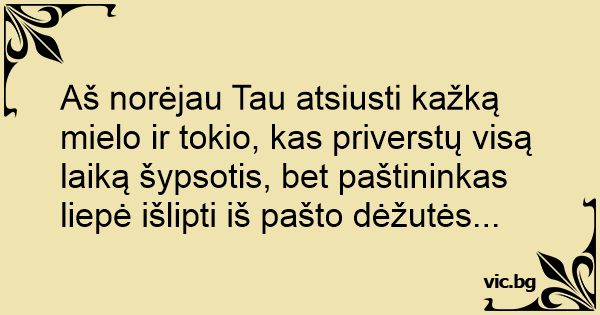Aš norėjau Tau atsiusti kažką mielo ir tokio, kas priverstų visą laiką šypsotis, bet paštininkas liepė išlipti iš pašto dėžutės...