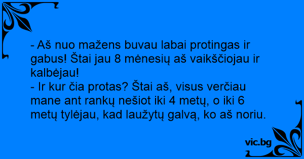 - Aš nuo mažens buvau labai protingas ir gabus! Štai jau 8 mėnesių aš vaikščiojau ir kalbėjau!