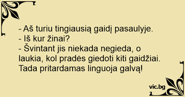 - Aš turiu tingiausią gaidį...