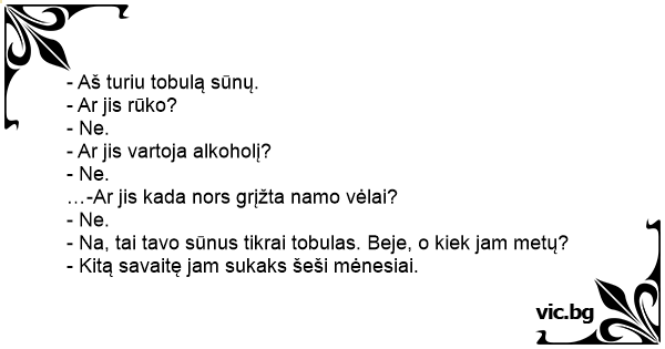 - Na, tai tavo sūnus tikrai tobulas. Beje, o kiek jam metų?