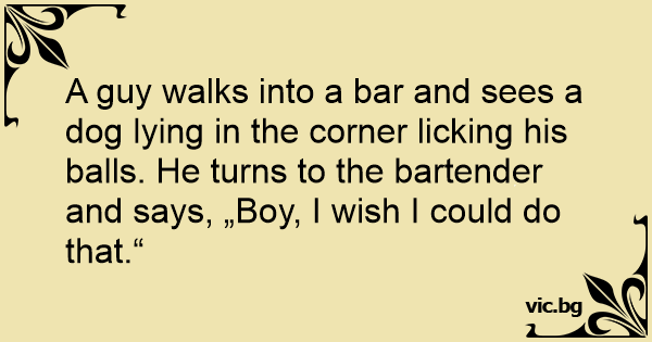 A guy walks into a bar and sees a dog lying in the corner licking his ваlls. He turns to the bartender and says, „Boy, I wish I could do that.“