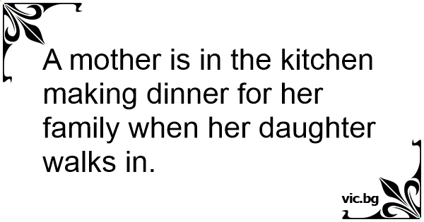 A mother is in the kitchen making dinner for her family when her daughter walks in.