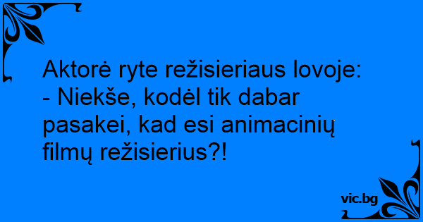 - Niekše, kodėl tik dabar pasakei, kad esi animacinių filmų režisierius?!