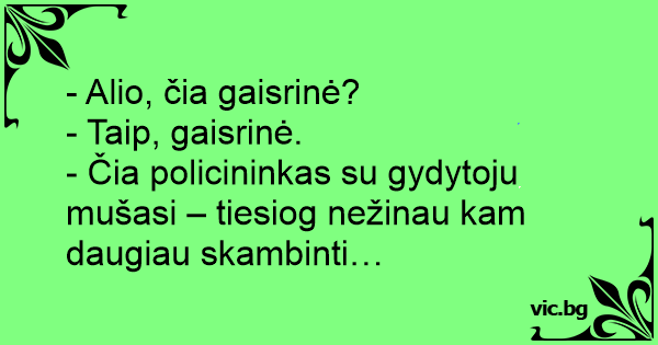 - Čia policininkas su gydytoju mušasi – tiesiog nežinau kam daugiau skambinti…