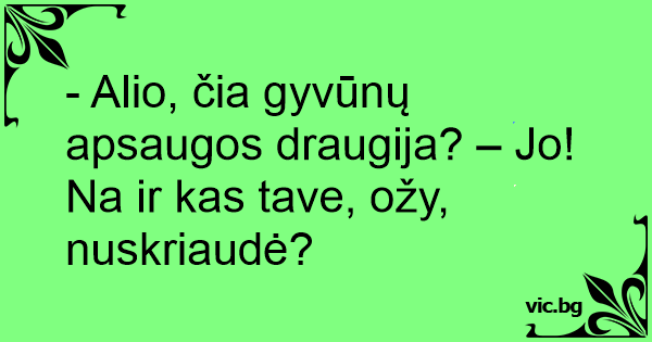 - Alio, čia gyvūnų apsaugos draugija? – Jo! Na ir kas tave, ožy, nuskriaudė?
