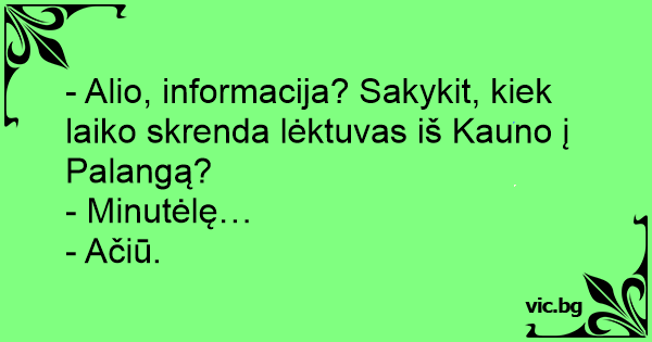 - Alio, informacija? Sakykit, kiek laiko skrenda lėktuvas iš Kauno į Palangą?
