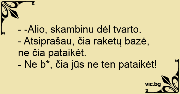 - Atsiprašau, čia raketų bazė, ne čia pataikėt.