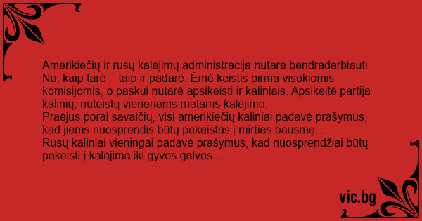 Amerikiečių ir rusų kalėjimų administracija nutarė bendradarbiauti. Nu, kaip tarė – taip ir padarė. Ėmė keistis pirma visokiomis komisijomis, o paskui nutarė apsikeisti ir kaliniais. Apsikeitė partija kalinių, nuteistų vieneriems metams kalėjimo.