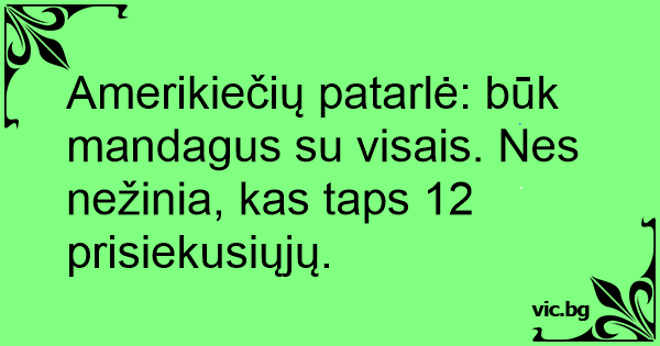 Amerikiečių patarlė: būk mandagus su visais. Nes nežinia, kas taps 12 prisiekusiųjų.