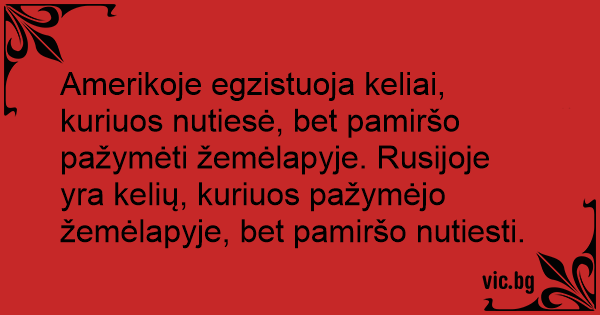 Amerikoje egzistuoja keliai, kuriuos nutiesė, bet pamiršo pažymėti žemėlapyje. Rusijoje yra kelių, kuriuos pažymėjo žemėlapyje, bet pamiršo nutiesti.