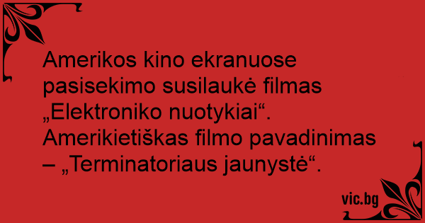 Amerikos kino ekranuose pasisekimo susilaukė filmas „Elektroniko nuotykiai“. Amerikietiškas filmo pavadinimas – „Terminatoriaus jaunystė“.