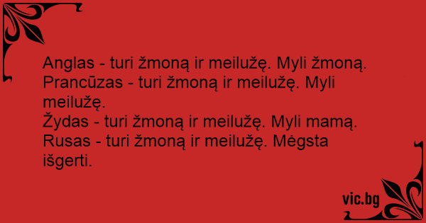 Prancūzas - turi žmoną ir meilužę. Myli meilužę.