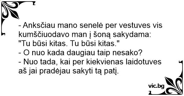 - Anksčiau mano senelė per vestuves vis kumščiuodavo man į šoną sakydama: