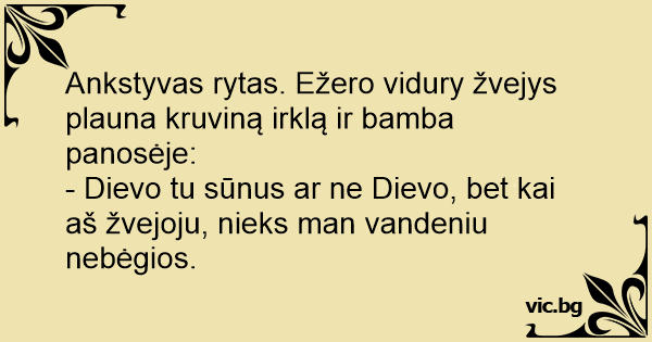 - Dievo tu sūnus ar ne Dievo, bet kai aš žvejoju, nieks man vandeniu nebėgios.