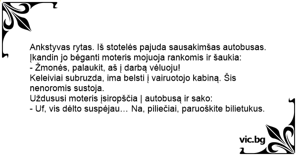 - Uf, vis dėlto suspėjau… Na, piliečiai, paruoškite bilietukus.