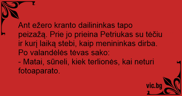 - Matai, sūneli, kiek terlionės, kai neturi fotoaparato.