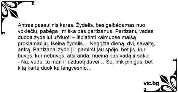 - Nu, vade, tu man ir užduotį davei… Še, imk pinigus, bet kitą kartą duok ką lengvesnio…