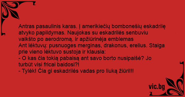 - Tylėk! Čia gi eskadrilės vadas pro liuką žiūri!!!