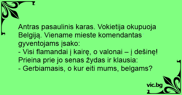 Antras pasaulinis karas. Vokietija okupuoja Belgiją. Viename mieste komendantas gyventojams įsako: