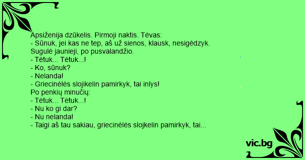 - Sūnuk, jei kas ne tep, aš už sienos, klausk, nesigėdzyk.