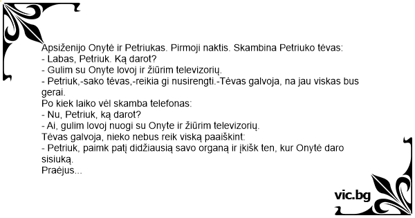 - Petriuk, paimk patį didžiausią savo organą ir įkišk ten, kur Onytė daro sisiuką.