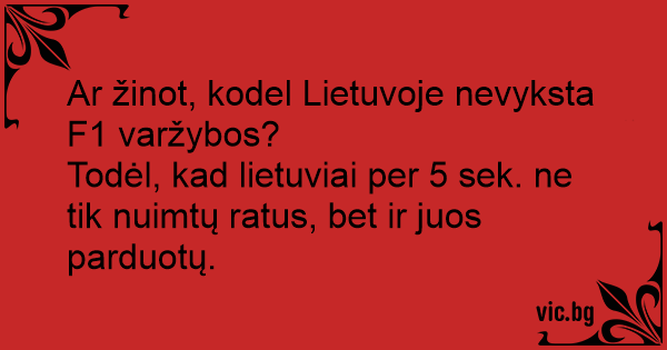 Ar žinot, kodel Lietuvoje nevyksta F1 varžybos?