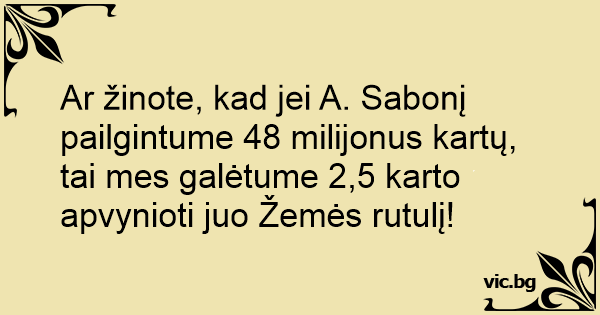 Ar žinote, kad jei A. Sabonį pailgintume 48 milijonus kartų, tai mes galėtume 2,5 karto apvynioti juo Žemės rutulį!