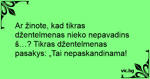 Ar žinote, kad tikras džentelmenas nieko nepavadins š…? Tikras džentelmenas pasakys: „Tai nepaskandinama!