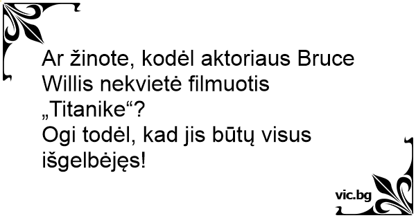 Ar žinote, kodėl aktoriaus Bruce Willis nekvietė filmuotis „Titanike“?