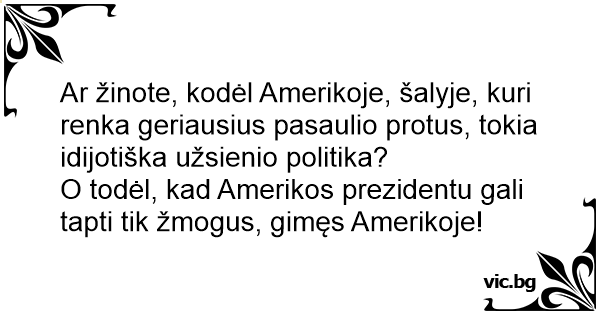 O todėl, kad Amerikos prezidentu gali tapti tik žmogus, gimęs Amerikoje!