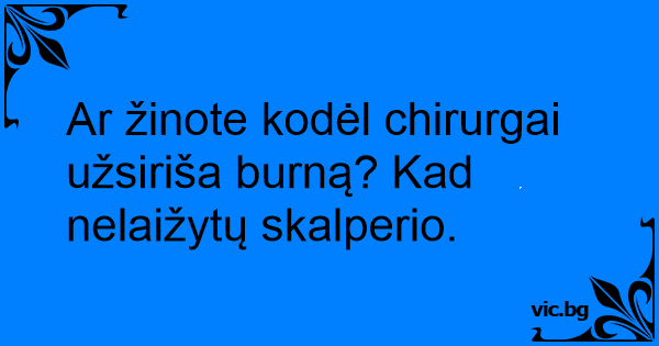 Ar žinote kodėl chirurgai užsiriša burną? Kad nelaižytų skalperio.