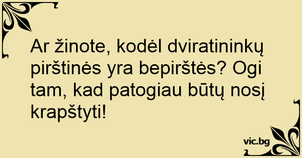 Ar žinote, kodėl dviratininkų pirštinės yra bepirštės? Ogi tam, kad patogiau būtų nosį krapštyti!