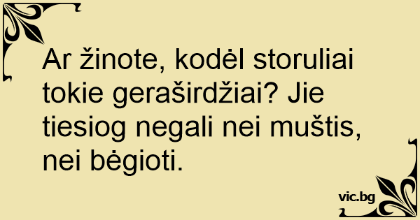Ar žinote, kodėl storuliai tokie geraširdžiai? Jie tiesiog negali nei muštis, nei bėgioti.