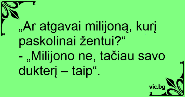 „Ar atgavai milijoną, kurį paskolinai žentui?“