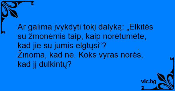 Ar galima įvykdyti tokį dalyką: „Elkitės su žmonėmis taip, kaip norėtumėte, kad jie su jumis elgtųsi“?