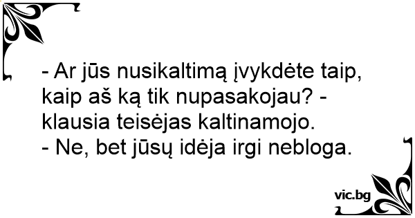- Ar jūs nusikaltimą įvykdėte taip, kaip aš ką tik nupasakojau? - klausia teisėjas kaltinamojo.