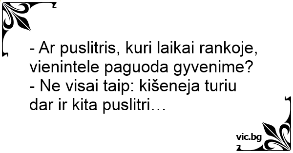 - Ar puslitris, kuri laikai rankoje, vienintele paguoda gyvenime?