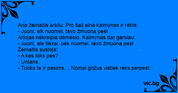 - Juoni, eik nuomei, tavo žmuoną pes!