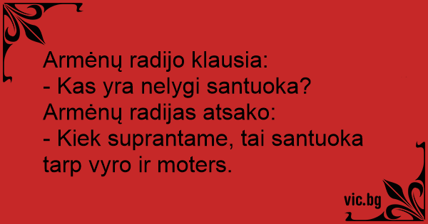 - Kiek suprantame, tai santuoka tarp vyro ir moters.