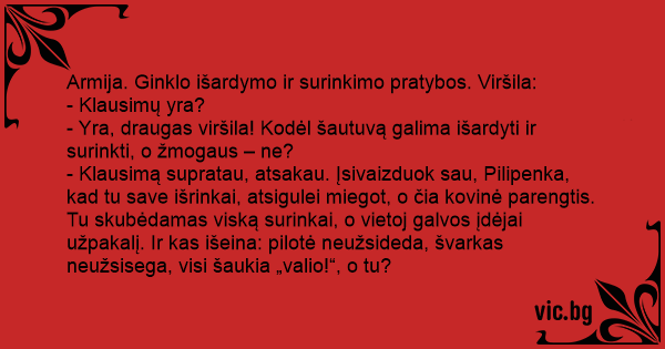 - Yra, draugas viršila! Kodėl šautuvą galima išardyti ir surinkti, o žmogaus – ne?