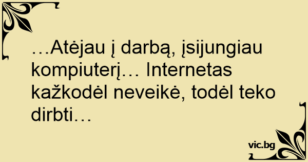 …Atėjau į darbą, įsijungiau kompiuterį… Internetas kažkodėl neveikė, todėl teko dirbti…